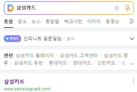 1. 포털에 '삼성카드'를 검색 합니다.